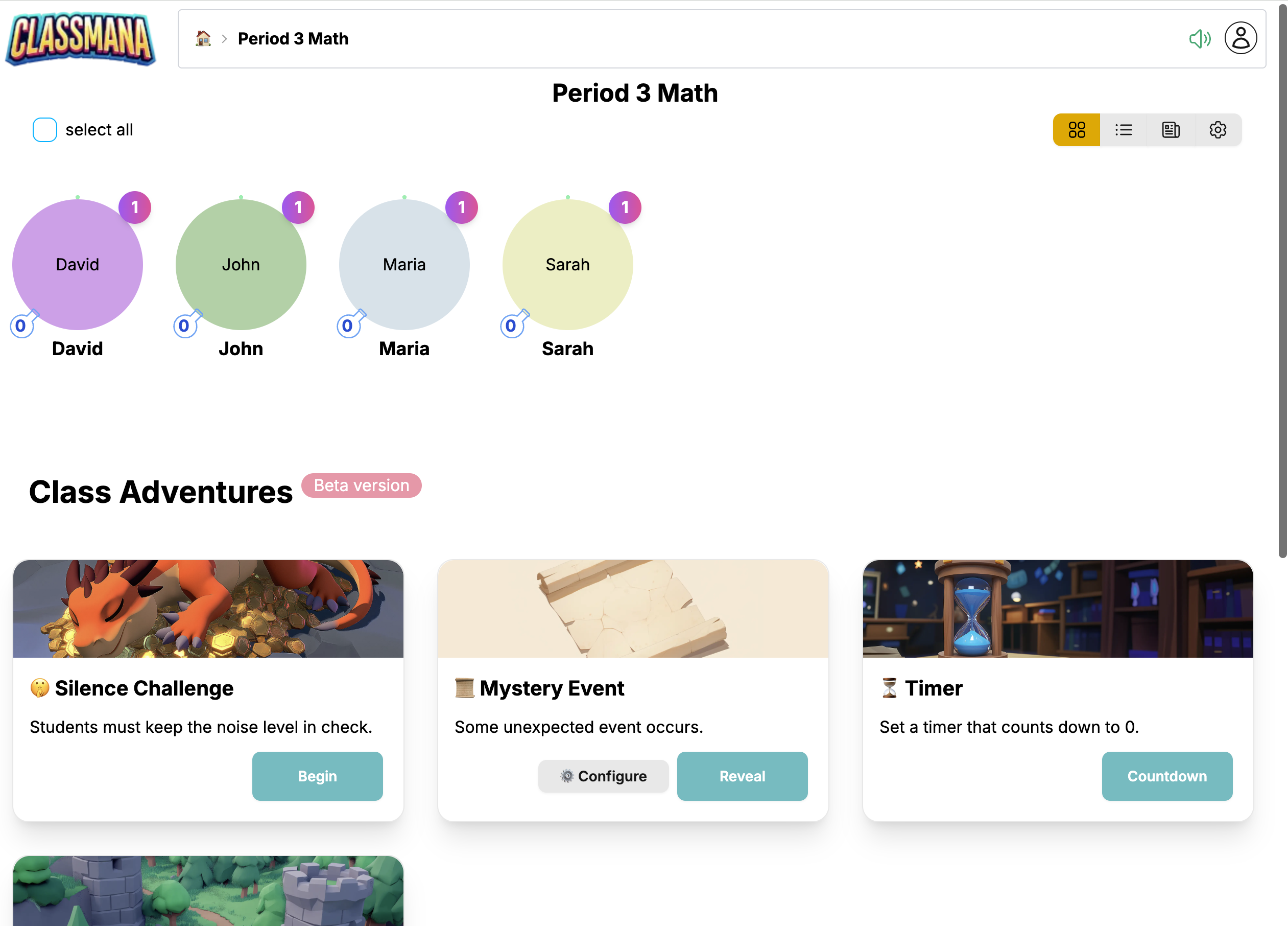 Creating a class unlocks the full gamification features of ClassMana. Currently free, but will require a paid subscription in the future.