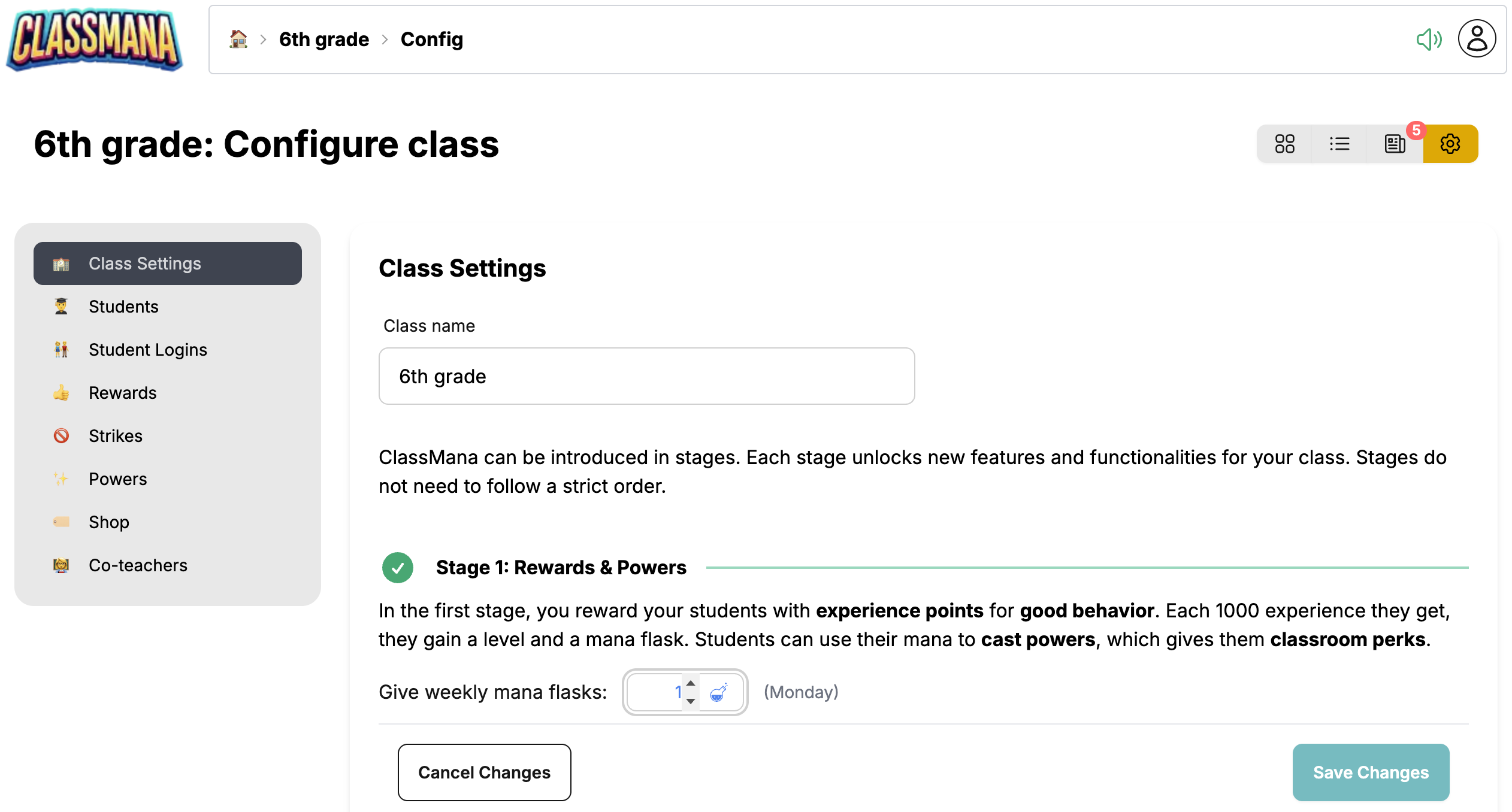 You can customize rewards, powers, and mana distribution anytime to match your teaching style and classroom needs.