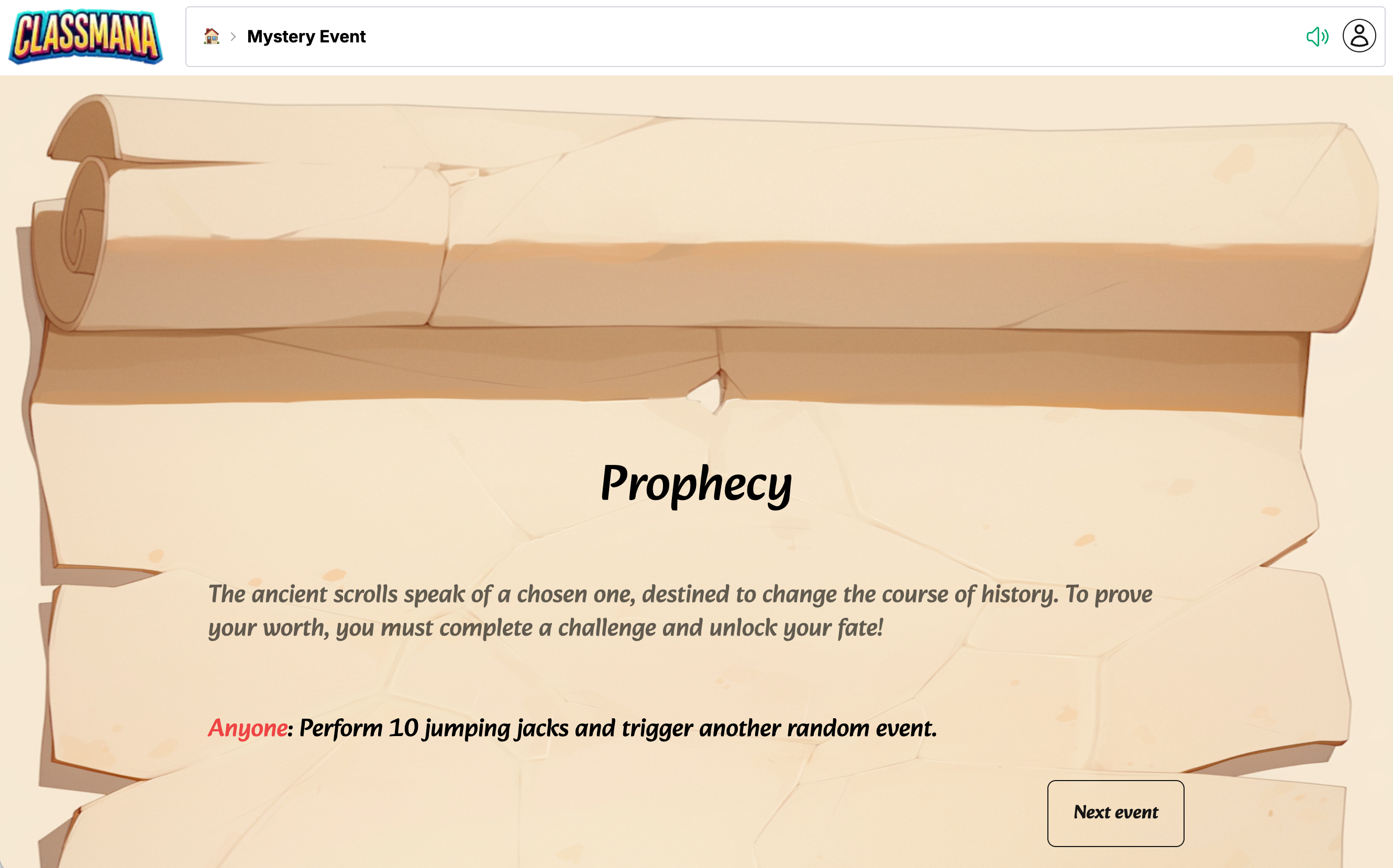- 🏠 Dashboard → Teacher Tools → Mystery Event